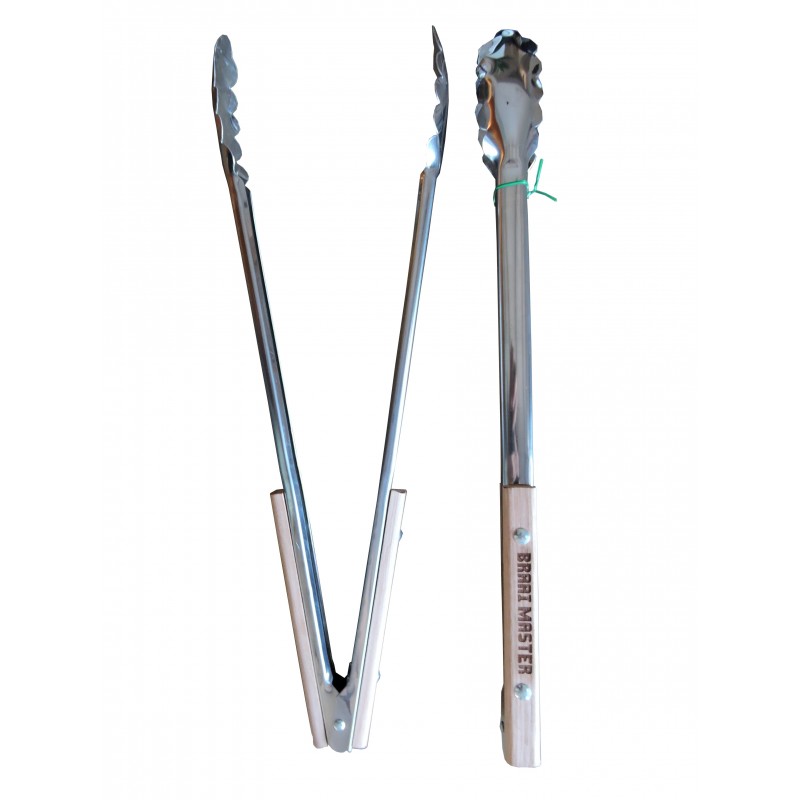 Laser engraved braai tongs reading "BRAAI MEESTER" or "BRAAI MASTER" on one side and the persons name on the other side